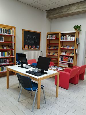 8.500 volumi catalogati, collocati a scaffale aperto; 1 quotidiano, 2 riviste;