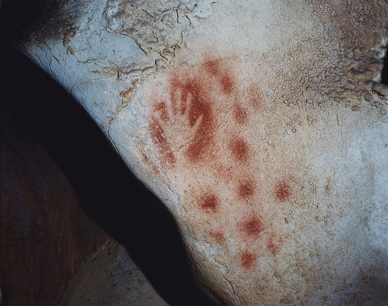 L’installazione nella sinagoga, con solo tre fotografie, rinvia a lontananze quasi vertiginose la memoria dell’uomo sull’uomo. Un’immagine di Fabio Barile dell’entrata (o uscita?) di una grotta calcarea nell’altopiano carsico delle Murge in Puglia dialoga con due immagini di Domingo Milella, una che ritrae il fregio rupestre di una coppia di cavalli nella caverna di Pech-Merle in Occitania e l’altra che raffigura impronte di dita e altri simboli rupestri nella grotta di El Castillo in Cantabria.