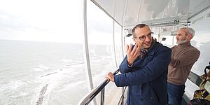 Ricci e la torre panoramica: «Cartolina straordinaria che farà amare la città» Il test in anteprima del sindaco: «Grande spettacolo e promozione unica per Pesaro». Inaugurazione pubblica domani alle 18