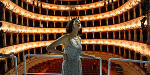 “La Rossiniana”, foto ricordo davanti al teatro Domenica 23 settembre/Pedalata da Lugo di Romagna a Pesaro, nel nome di Rossini