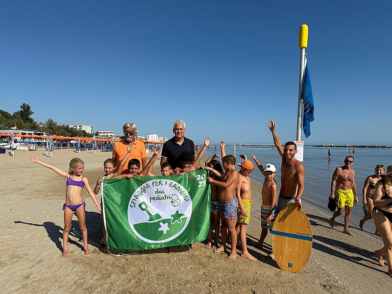 «Fieri di un riconoscimento per le spiagge pesaresi, che oltre 3mila pediatri hanno certificato essere “a misura” dei bambini», così l’assessore alla Salute Luca Pandolfi dopo aver issato la “bandiera verde”, assegnata da medici italiani e stranieri, simbolicamente, al Circolo Velico Ardizio.