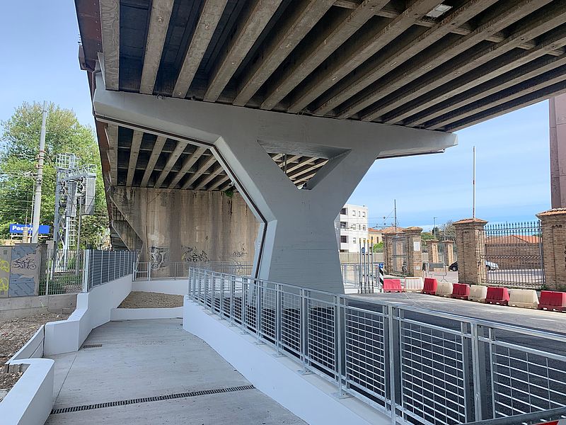 Per le operazioni di manutenzioni svolte sopra al cavalcaferrovia è stato necessario interfacciarsi con Rete Ferroviaria Italiana. Insieme a RFI sono stati individuati giorni e orari per lavorare in sicurezza, disalimentando la linea elettrica aerea della ferrovia.