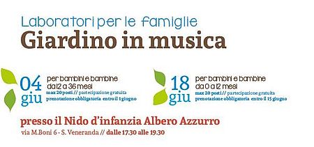 Verranno proposte attività di ascolto di strumenti dal vivo, giochi ritmici, melodici, con esplorazione degli spazi naturali del giardino.