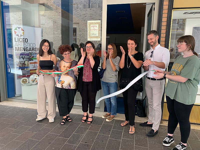 La prima vetrina “allestita” è stata ideata dalle studentesse e dagli studenti (rappresentati da Valentina Tonti e Giulia Forlani, della 4C) delle sezioni di Grafica e Fashion design del Mengaroni. Serena Perugini, dirigente scolastico, «È stata un’emozione passare in via San Francesco in bici e vedere realizzati gli abiti, esempi della tradizione di tessitura della scuola, ed esposti i piatti in ceramica fatti dai nostri ragazzi; Sono temi che richiamano Rossini e importanti per la città, soprattutto in vista di Pesaro2024. Con l’allestimento “A pranzo con Rossini” ogni studente ha studiato, per ogni opera del Cigno, una ricetta e un piatto abbinato, la sezione di moda gli abiti esposti». Per la docente Isabella Galeazzi, il progetto «è un’ulteriore opportunità per i ragazzi che possono avere una loro vetrina; un altro modo con cui “la parola si fa immagine” grazie alla fiducia, sempre corrisposta, del Comune».