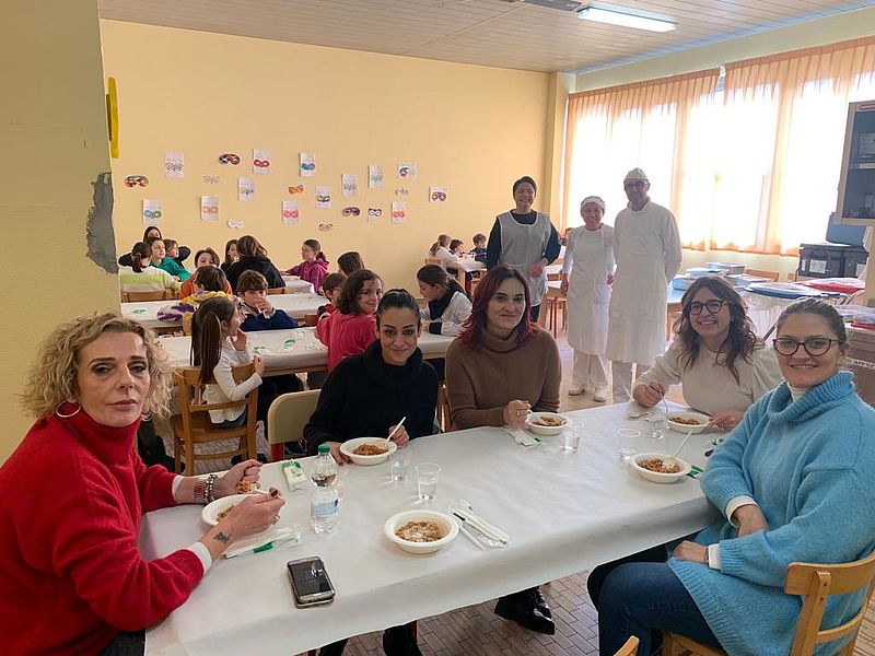“Coriandoli al pomodoro” e “polpettone in maschera”: così i piccoli studenti della città hanno rinominato i piatti del menu sostenibile, servito oggi nelle mense scolastiche pesaresi. Circa 3000 i piatti distribuiti agli alunni delle scuole d’infanzia e primarie della città in occasione di “M’Illumino di Meno”, la Giornata nazionale del risparmio energetico e degli stili di vita sostenibili, a cui il Comune aderisce con diversi appuntamenti. Tra cui quello del pasto “sostenibile” negli istituti della città, perché «La sostenibilità si insegna anche a scuola ed è importante, a tutte le età, riflettere sul nostro modo di mangiare» hanno ricordato Camilla Murgia e Maria Rosa Conti, assessore del Comune di Pesaro che hanno pranzato alla Manzi di via Confalonieri (Ic Olivieri) gustando il primo piatto (grano saraceno, pomodoro e origano), il secondo (polpettone di lenticchie, bietola, carote e patate) accompagnato da insalata mista e kiwi e pere come frutta.