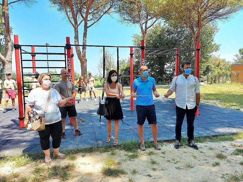 PESARO – Aperta la nuova struttura workout al parco Scarpellini, che sostituisce il vecchio percorso fitness rimosso in occasione dei lavori fatti per il nuovo campo da rugby. Attrezzature aperte a tutti e funzionali agli allenamenti all’aperto di calisthenics e street workout, che stanno spopolando tra i giovani. Commenta il sindaco Matteo Ricci: «Abbiamo colto un’esigenza partita dal basso, dando una risposta concreta. Il parco Scarpellini è migliorato molto negli ultimi anni. Con i lavori di riqualificazione quasi completati e il campo da rugby diventa un’area sempre più interessante per tutta la città. La filosofia è che i parchi devono vivere. Anche rispetto ai problemi di degrado, la ricetta principale è portarci persone. Avere qui ragazzi che vengono tutti i giorni ad allenarsi fa bene a loro e consente al parco di vivere in maniera sana. Andremo avanti con ulteriori iniziative in altri parchi della città». Evidenzia l’assessore Mila Della Dora: «Nel 2018 abbiamo installato una struttura workout al Campo Scuola. L’esperimento è andato bene e abbiamo deciso di replicarlo anche allo Scarpellini, raccogliendo l’input del trainer Massimo Fuligno e del quartiere. Avere strutture sportive nei parchi è fondamentale per le buone frequentazioni. Lo abbiamo visto nelle altre aree verdi della città e al Miralfiore, dal 25 maggio frequentato da circa 60 società e palestre e popolato da 11 realtà di danza presenti nella tensostruttura. L’obiettivo è allestire ulteriori attrezzature simili in altri parchi cittadini». Dal Comune un investimento di 16mila e 200 euro. La struttura è realizzata da Ironlink, sponsor tecnico di varie discipline nazionali e internazionali. «Un intervento molto importante, perché tante persone amano allenarsi all’aperto e ora ci saranno attrezzature adeguate. Un segnale positivo anche per i ragazzi», commenta Fuligno, tra i promotori dell’intervento insieme al quartiere, presente con i consiglieri Antonella Giardini e Fabio Filippetti.