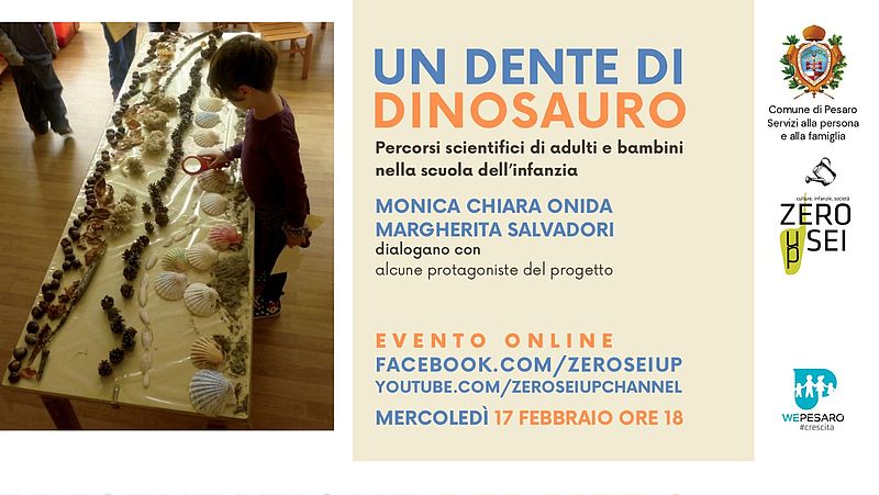 Percorsi scientifici di adulti e bambini nella scuola dell’infanzia. Si parlerà di questo nell’incontro di mercoledì 17, alle 18, promosso da ZEROSEIUP e Comune di Pesaro. Al centro dell’iniziativa, inserita nella rassegna “Aperitivo con l’autore”, la presentazione di “Un dente di dinosauro”, il libro a cura di Monica Chiara Onida e Margherita Salvadori.
