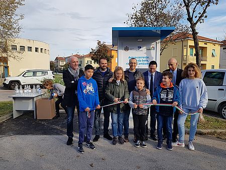 PESARO – Spuntano le prime «case dell’acqua» in città. Una a Villa Fastiggi, l’altra al parcheggio del San Decenzio. A battezzare il distributore di via della Concordia, di prima mattina, il sindaco Matteo Ricci e l’assessore Franca Foronchi, insieme ai vertici di Marche Multiservizi e Aato e al presidente del quartiere Luca Di Dario. Con loro, una rappresentanza delle medie della Galilei. L’acqua, che proviene direttamente dalla rete acquedottistica locale, è disponibile in modalità refrigerata, frizzante o leggermente frizzante. Al costo di cinque centesimi al litro. Così Ricci: «L’acqua va preservata e tutelata. E’ un bene primario, deve essere a disposizione di tutti ai prezzi più bassi possibili. Quella del nostro acquedotto è potabile e costantemente controllata. E in queste casette è buona come quella minerale. Un servizio importante, utile ad educare le nuove generazioni a un consumo consapevole. Che in più assicura un bel risparmio». Evidenzia il presidente Mms Massimo Galuzzi, affiancato dall’amministratore delegato Mauro Tiviroli: «L’obiettivo è promuovere la qualità dell’acqua erogata dall’acquedotto, su cui eseguiamo ogni anno oltre 70 mila analisi. Tenendo monitorati i punti di prelievo e le reti attraverso un preciso piano di controlli. Con le casette si contribuisce alla sostenibilità, consumando meno plastica e facendo economia domestica. Realizzate da Adriatica Acque, sono il risultato dell’impegno congiunto di Comune, Marche Multiservizi e Aato». Spiega il sindaco di Peglio Daniele Tagliolini, in rappresentanza dell’Aato: «Ridurre i rifiuti di plastica non è cosa banale. Con le casette diamo un segnale supplementare. E a Pesaro avremo in futuro investimenti importanti, portati avanti dall’Aato e attesi da anni: il primo è legato al depuratore di Borgheria. In più ci saranno azioni sull’ambito dell’approvvigionamento idrico: con la Regione abbiamo fatto un grande passo per definire i punti dove captare acqua in falda sotterranea. Per ottenere una qualità ulteriore».