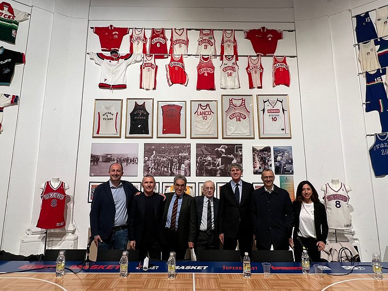 Alla conferenza stampa nella chiesa del Suffragio – davanti all’emozionante sezione dedicata a Pesaro - erano presenti: per il Comune, il sindaco Matteo Ricci, Daniele Vimini vicesindaco e assessore alla Bellezza, Mila Della Dora assessore alla Rapidità con delega allo Sport; Alberto Cecere curatore della mostra; per la rivista ‘Superbasket’, l’editore Giampiero Hruby e il direttore Dan Peterson; Franco Arceci presidente del Consorzio Pesaro Basket.