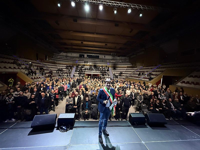 Un mosaico di ricordi che ha preparato il momento più atteso: il rinnovo delle promesse di matrimonio. Il sindaco Andrea Biancani, davanti alle famiglie e ai parenti che hanno voluto essere presenti in un momento speciale, ha abbracciato gli sposi: «Oggi siamo qui, cinquant’anni dopo, per celebrare un impegno ricordato dagli articoli di legge che avete sottoscritto e che avete già dimostrato di conoscere bene: la cura quotidiana dell’altro, l’assistenza morale e materiale, l’educazione dei figli, la collaborazione nell’interesse della famiglia. Avete vissuto “in salute e in malattia” tutto quello che avevate promesso, attraversando insieme un “mezzo secolo” fatto di fatiche, di gioie, di sconforto, di soddisfazioni, di paure, di scommesse a volte vinte e a volte perse, di momenti complessi e di altri sereni. Il vostro è un esempio di amore, rispetto e dedizione. Cinquant’anni insieme rappresentano un traguardo straordinario e la vostra storia è un dono prezioso; un esempio positivo per tutta la città che merita un riconoscimento speciale che abbiamo voluto celebrare insieme stasera». Poi, rivolto alle 154 coppie, ha domandato: «Signore e Signori sposi, intendete rinnovare la vostra promessa di matrimonio, cinquant’anni dopo?». Un sì corale e commosso, ha riempito la sala prima che il primo cittadino proclamasse che «In nome della legge dichiaro che i presenti sono ripromessi in matrimonio. Con gioia e onore dichiaro ufficiali le vostre Nozze d'Oro».