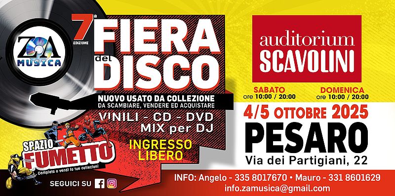 Organizzata da Zamusica in collaborazione con l'Associazione Ape & Co torna a Pesaro la Fiera del Disco + Spazio Fumetto !